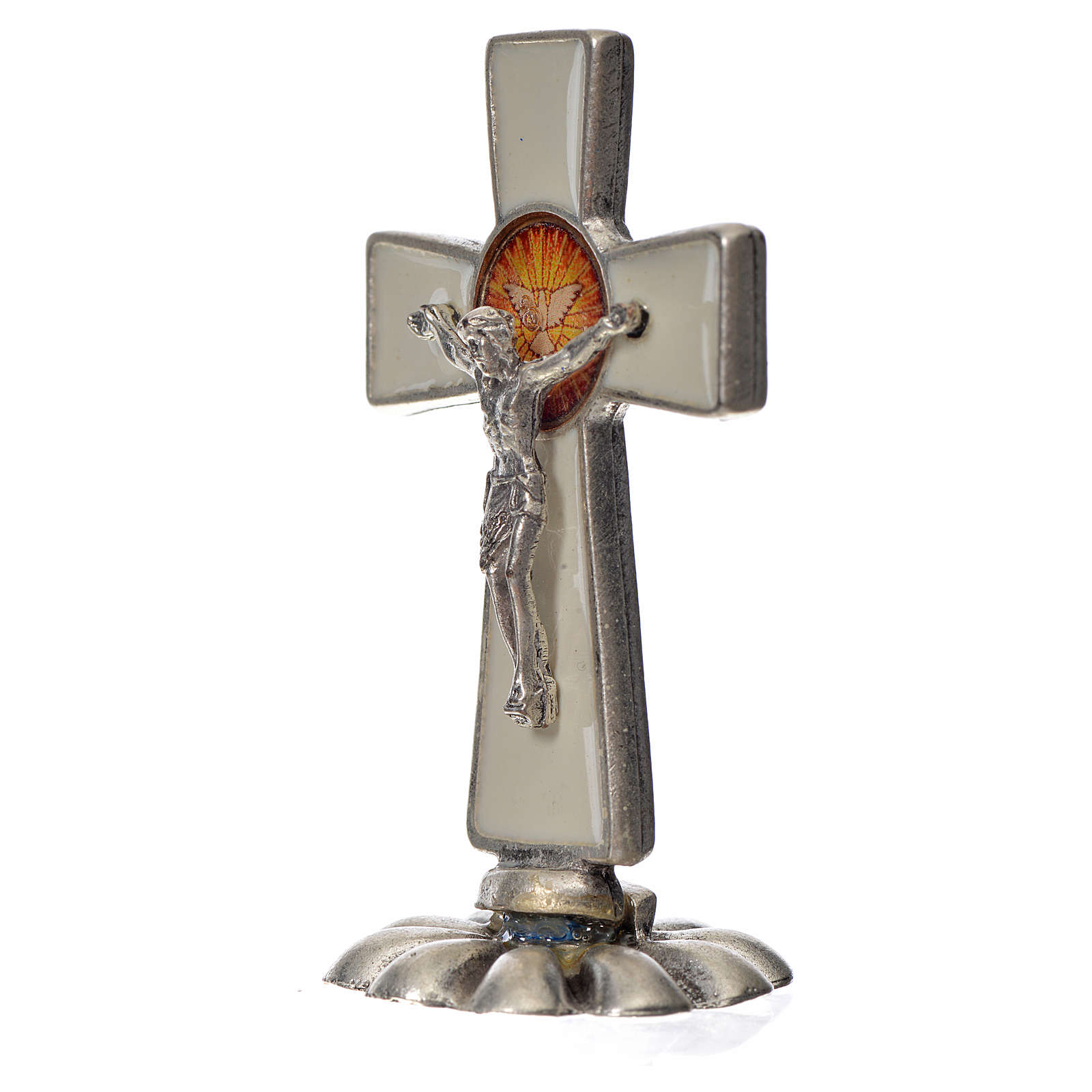croce spirito santo da tavolo smalto bianco cm 5,2×3,5